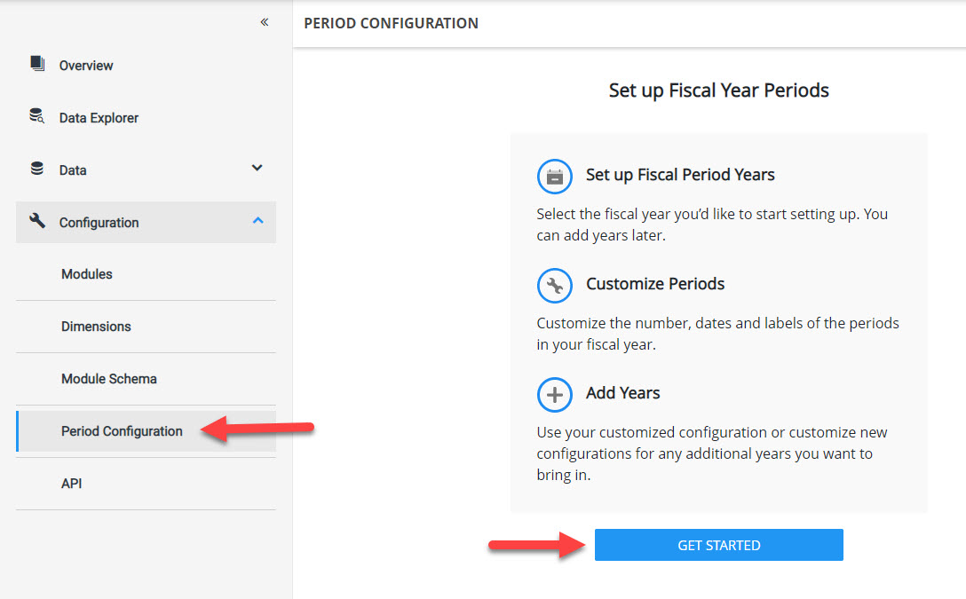 1. The Period Configuration wizard starts by providing a brief overview of the steps. Click Get Started to begin.