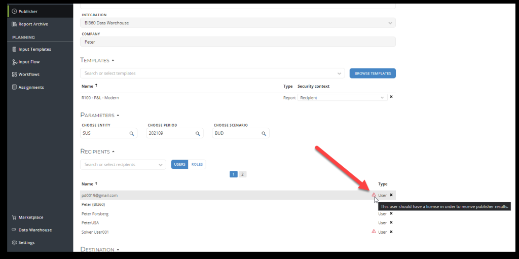 Solver does plan to turn off distribution to unlicensed recipients at the start of 2024, please work with your Salesperson to get licensing for these recipients. You can view unlicensed recipients of a Publisher subscription by clicking the subscription details and looking for the notification icon.