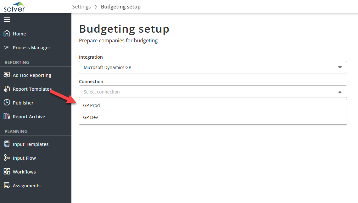 The Budgeting Setup menu enables budgeting from Solver to your ERP. Standard functionality in Solver is to only read data from your ERP database for those who have enabled Hybrid Reporting, but by configuring Budgeting Setup, users can enable budgeting (“writeback”) to an ERP and related features.