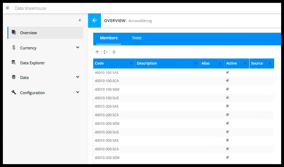 This example is based on the Solver Corp Demo. I have a three-segment account string as shown from the DW screen