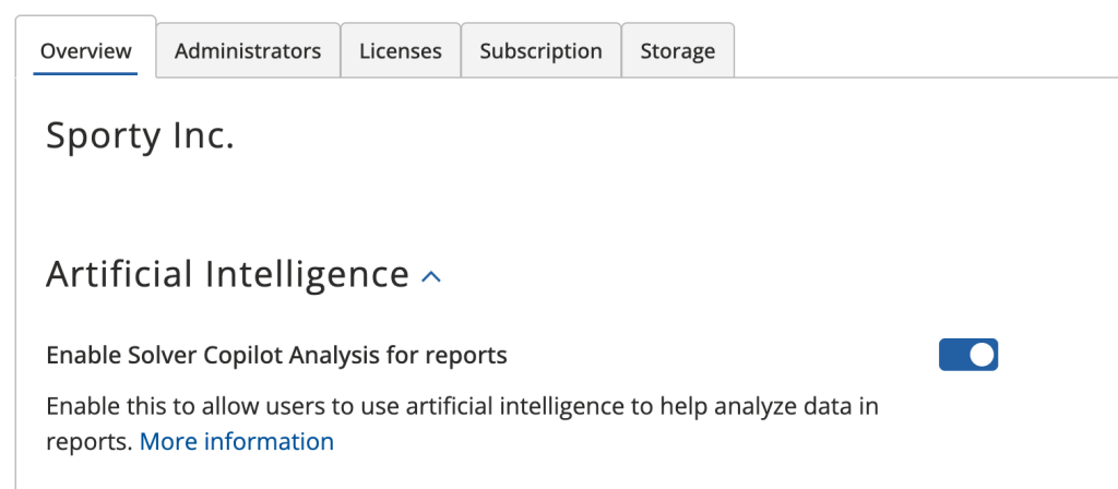 - When enabled, the Analysis Agent becomes available for all tenants under your Solver account.