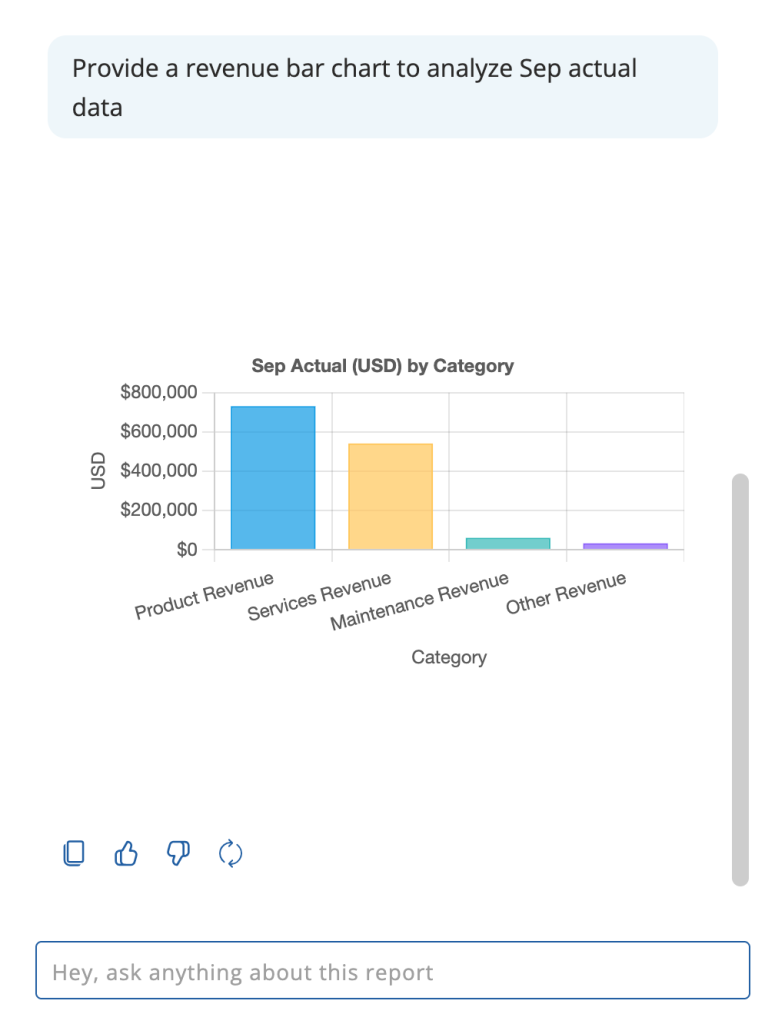 - Provide context (“focus on operating expenses” or “show top 5 variances”).