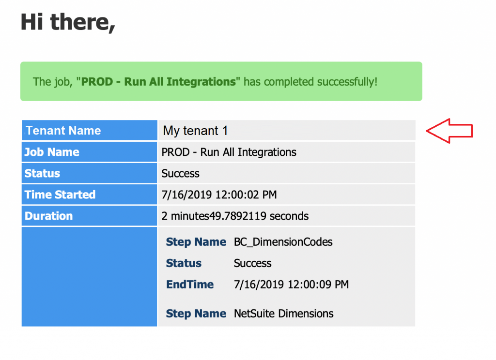 • Add tenant name to job email notification: For our customers with multiple tenants, job notifications now specify the tenant within the email notification when an integration job completes. To learn about email notifications here.