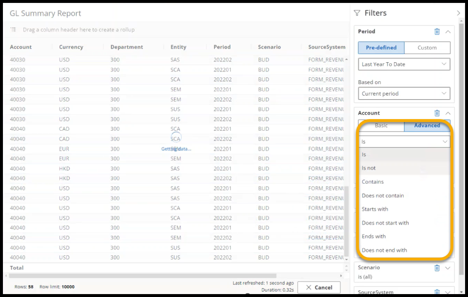 • Fixes an issue that caused Ad Hoc reporting to freeze when attempting to search after applying filters. This prevents freezing of the application when working with large data sets.