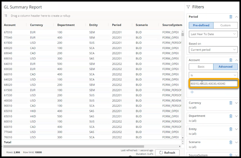 • Support was also added for expressions when using the advanced filter. This includes support for colon syntax for use with defining ranges (EX: 40010:40040).