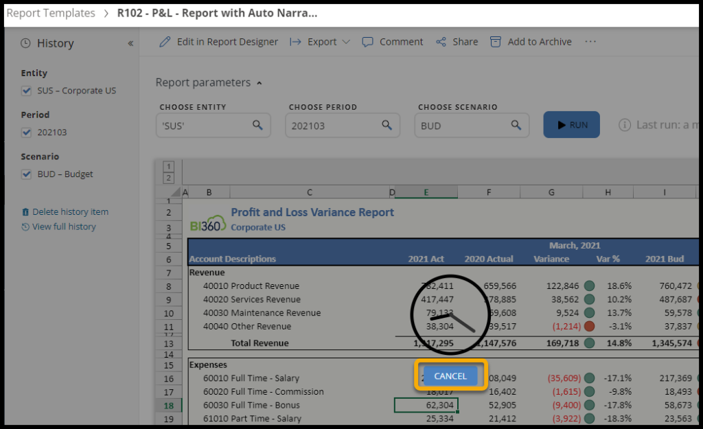 • Added an option to cancel the loading process of opening the prior execution of a budget template in Assignments and Input Templates. This can be very useful in cases where your prior execution takes time to open.