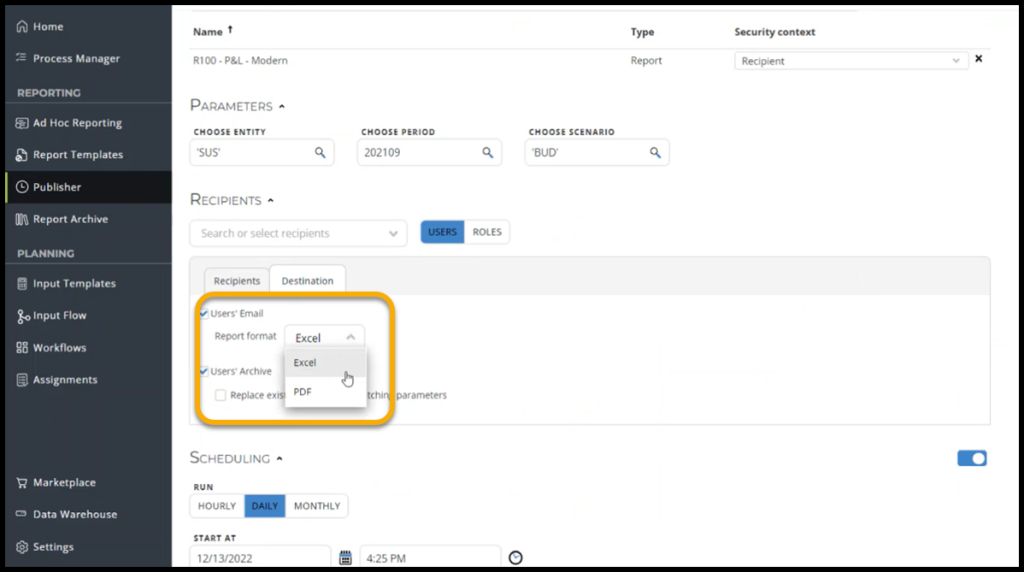 • Added the ability for Publisher recipients to receive a PDF file instead of an Excel file.
