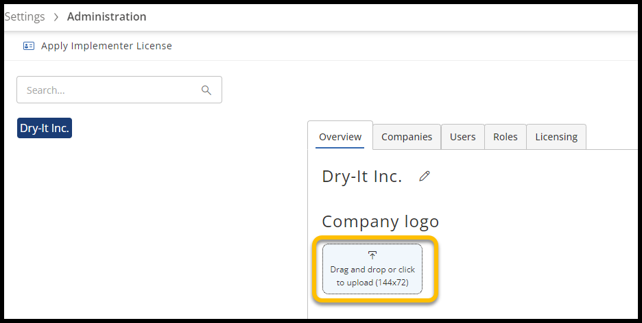 • Under the Company Logo section, drag and drop an image or click the box to select an image from your local files.