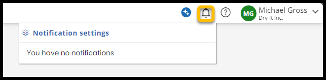 The notifications menu can be found by clicking the notification icon from the top toolbar. Doing so will open a tab with the user’s most recent notifications. This menu also includes a shortcut to the notification settings where users are able to customize the type and destination of their notifications from Solver.