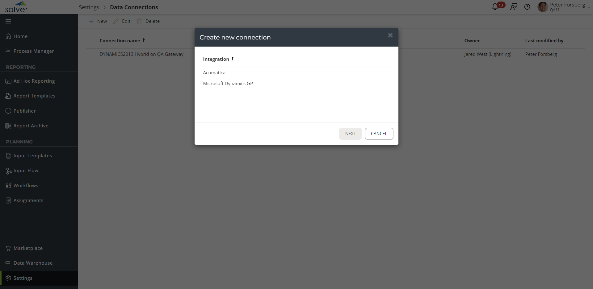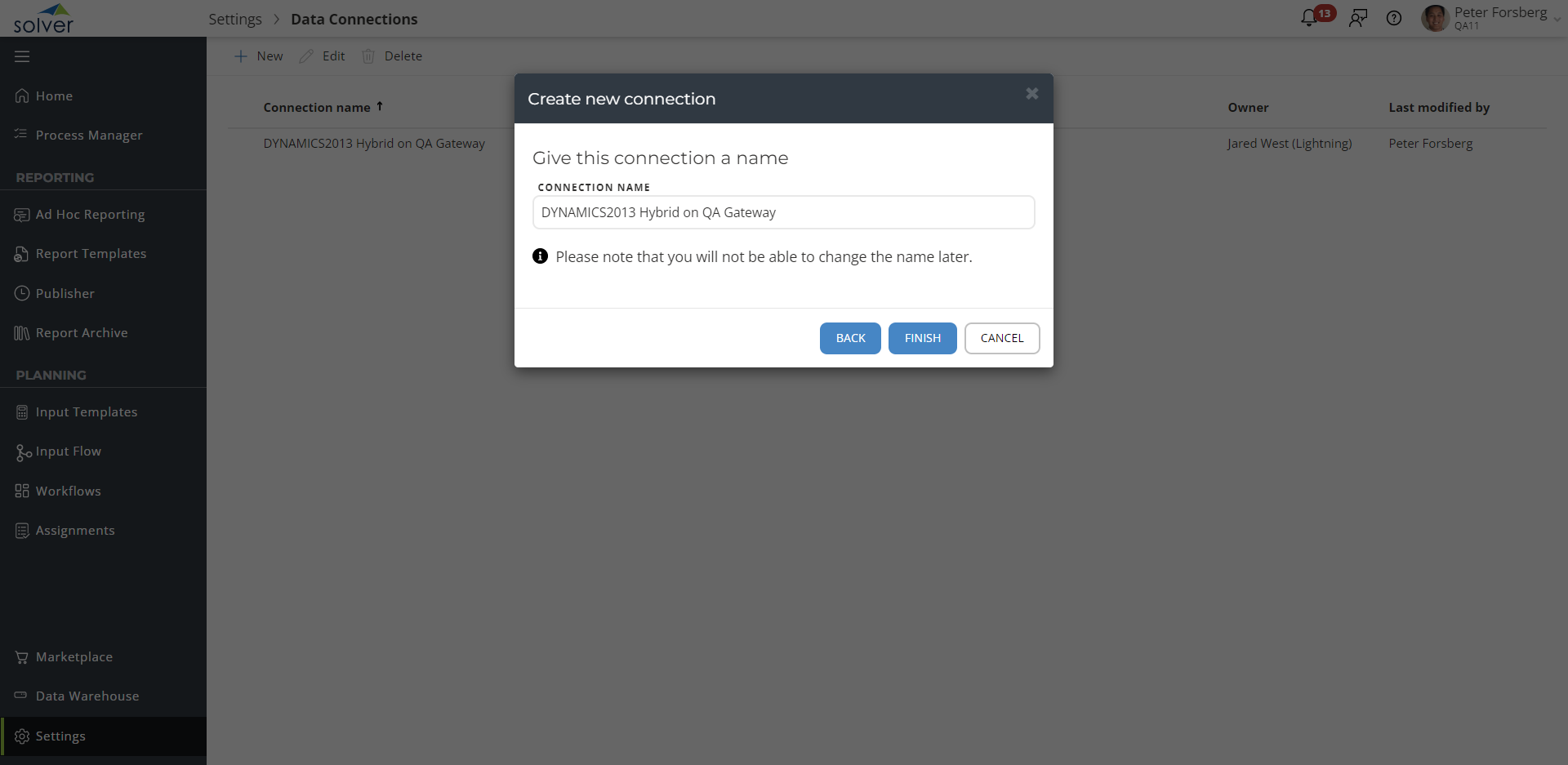 Next, you must set up a connection to your data from Solver.