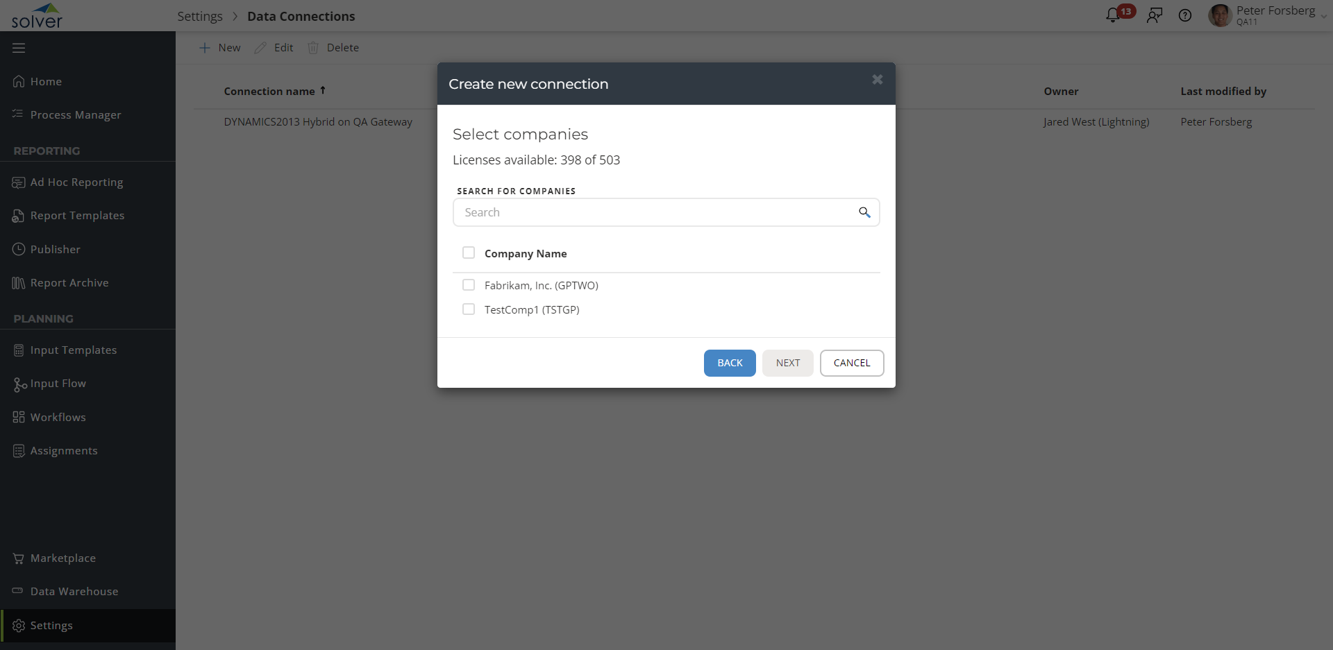 - You will then be prompted to select the companies that should be made available in Solver.
