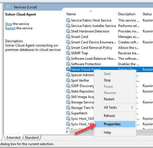 - Right-click the service and select Properties.