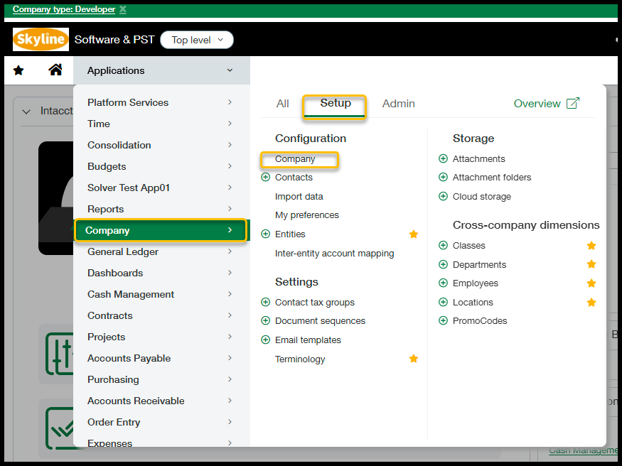 - Log in to Intacct as an Admin