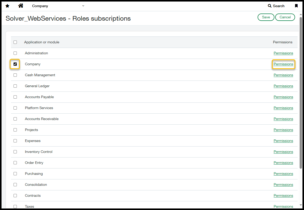 - Solver requires that view and list permissions be granted to the Company application.