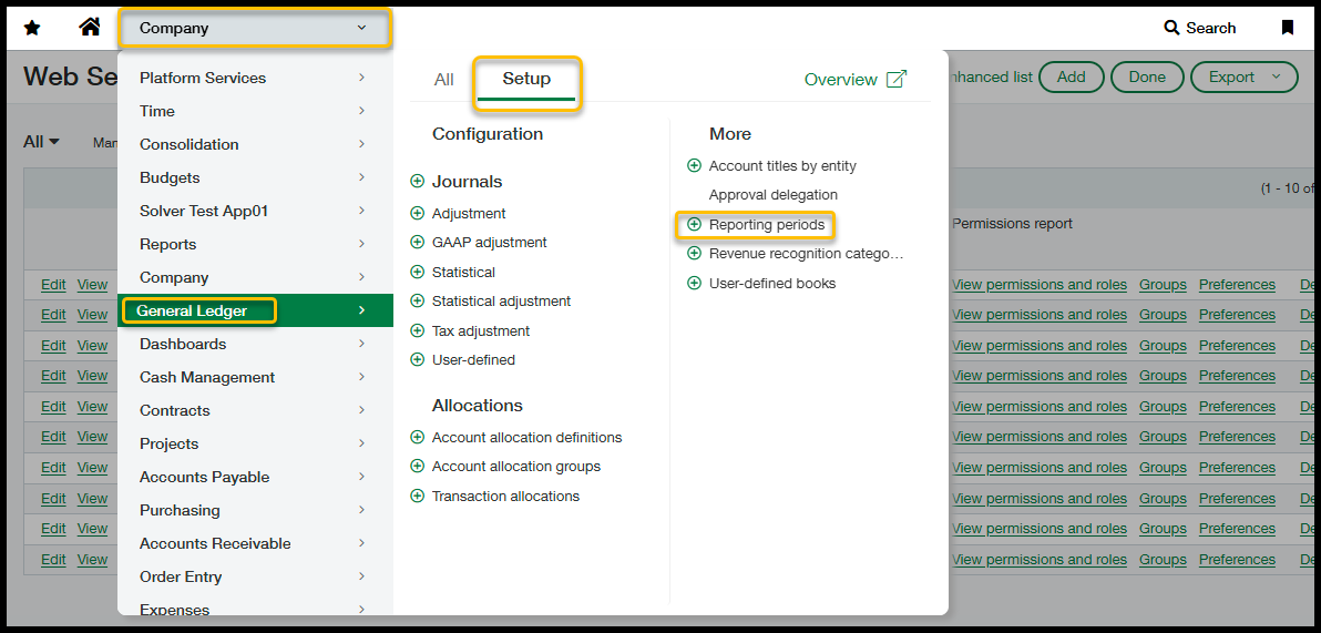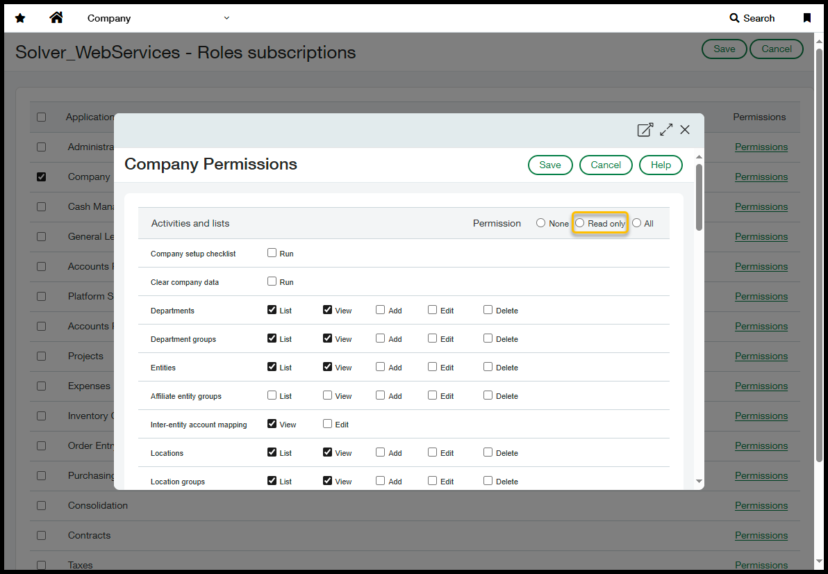 - On the Company module, make sure to assign List and View on the Account Periods list.