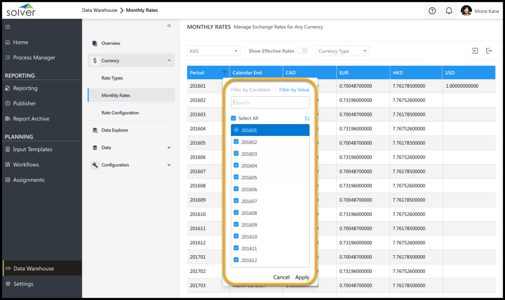 - Added new filters to the Monthly Rates table that allows users to view their data by period.