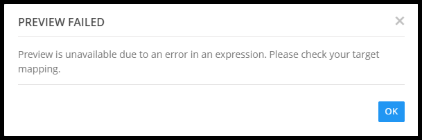 - Added an updated error message to be displayed when clicking on the preview target link when there is an error in the expression on the mapping screen.