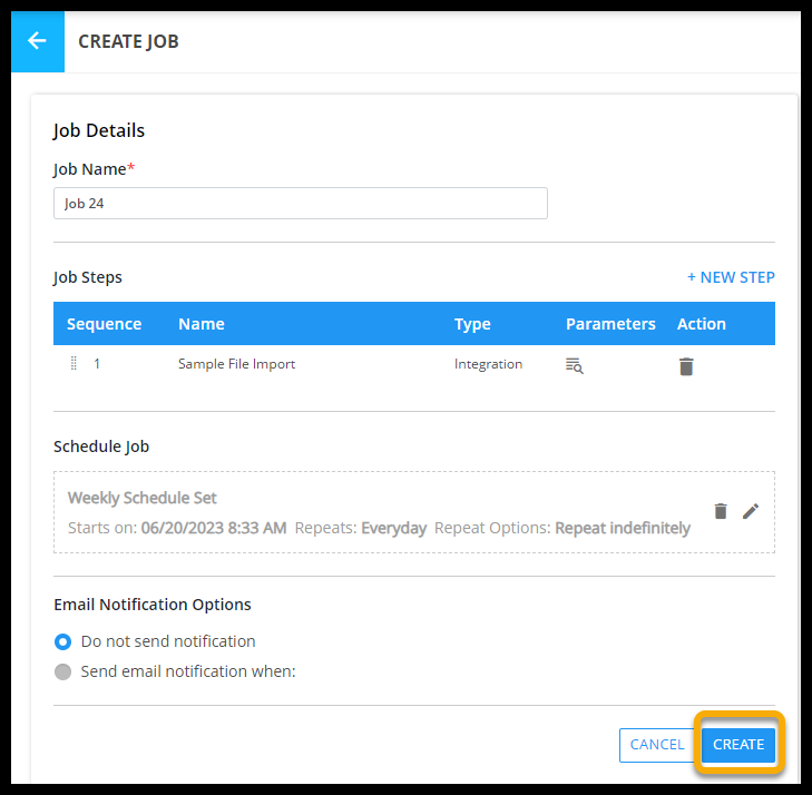 - Corrected the “Create and Run” button to Create when saving a Job.