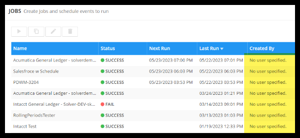 Happy June Solver users! This update will focus on the Data Warehouse with some changes that you should be aware of to the user interface on the Jobs page as well as some great fixes to your email notifications to ensure that you receive the best and most up-to-date information about your data. The June Solver update also includes huge improvements to error messaging and tooltips for the Data Warehouse that we think users will find very helpful when creating integrations. Reminder for all users, Beginning this month, event log history will be shortened to the past 30 days only. Please get in touch with Solver Support with any questions.