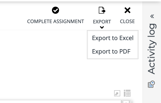 - The Assignments screen now has a new export option. The new menu is “Export,” which a sub-menu to “Export to Excel” and “Export to PDF.”