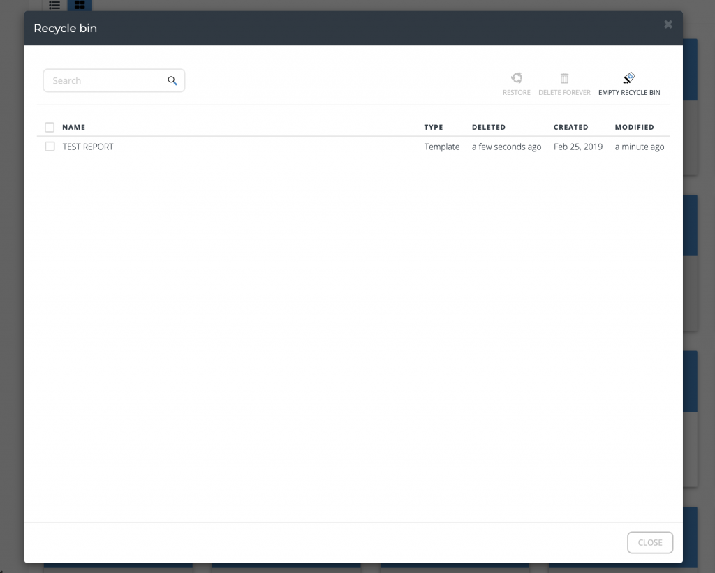 Recycle bin added to Report Templates and Input Templates. Users can now remove templates and restore them if the template was inadvertently deleted.