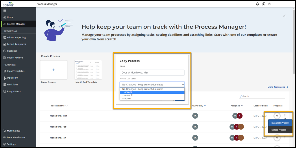 This is March Solver users! We have prepared another joy-inducing update for you this month that will improve your Solver experience all around the application. This update has big improvements and fixes to Process Manager, Ad Hoc Reporting, and Input Templates. Additionally, there is an optional, but recommended Report Designer upgrade.