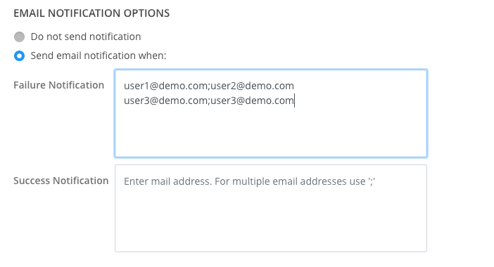 - Integration Jobs, email notifications are not sent when email’s are entered with the <enter> key for each email. This update ensures the emails are sent out even if the enter key is used to separate the emails.