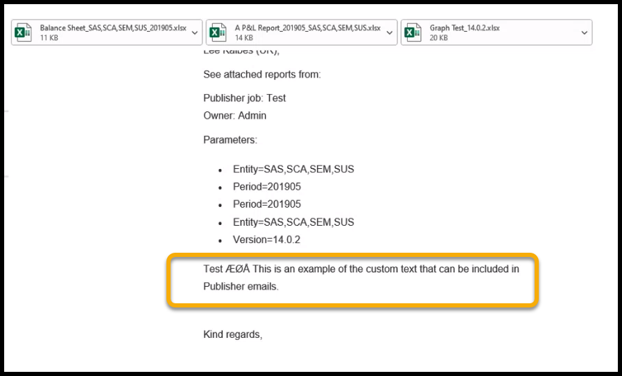 - Added parameters to the names of Publisher files to be included in the body of the email notification as well as the Excel file name.