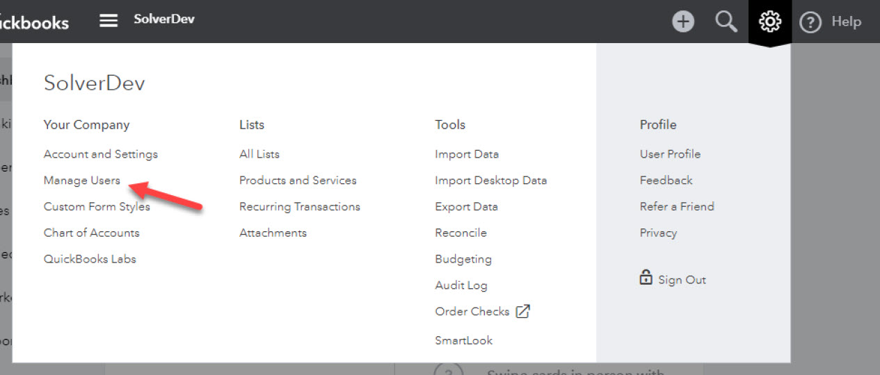 - Click on the cog icon in the upper right-hand corner and click Manage Users.