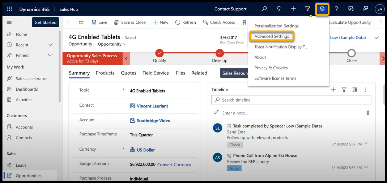 - Select Advanced Settings from the settings dropdown menu.
