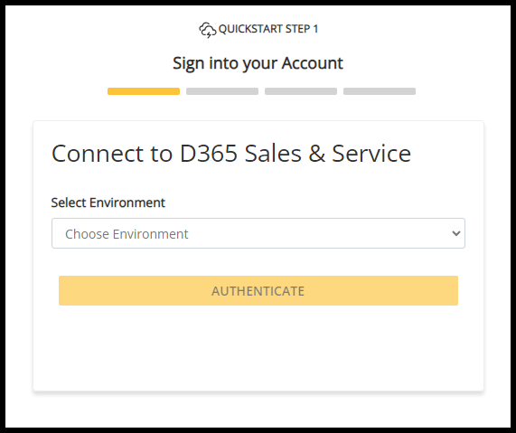 - Select an Environment from the dropdown menu in the wizard and press Authenticate to begin logging into your Microsoft CRM account.
