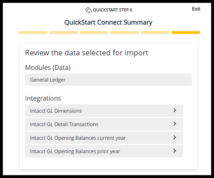 Users should note that the basic QuickStart integration for Intacct that this guide has highlighted requires specific data brought in. This data is the minimum required components for a QuickStart using Intacct. For more information on the particular data available for this implementation, please reference this article on QuickStart features.
