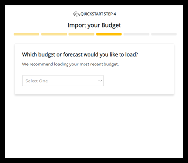 - Upload budget data from Intacct and will be given several options of the version of budget data that you would like to use.