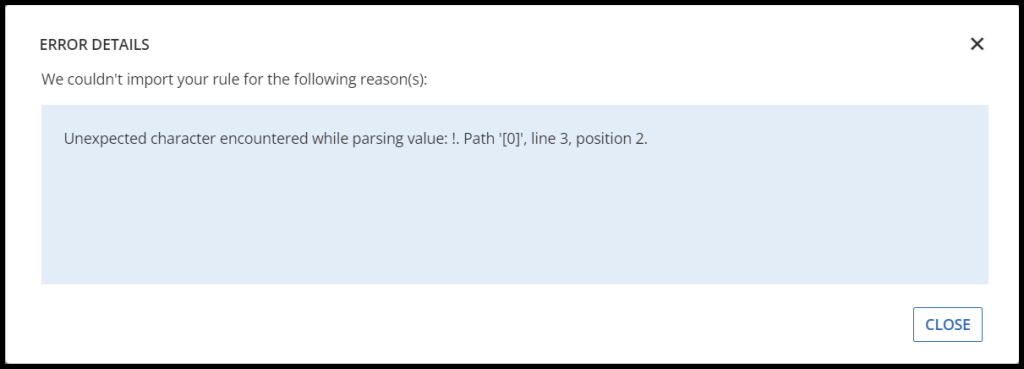 • Updated error handling to improve the experience with Business rules that error out. If a rule fails to import, users can now find a detailed error message with context in the event log.