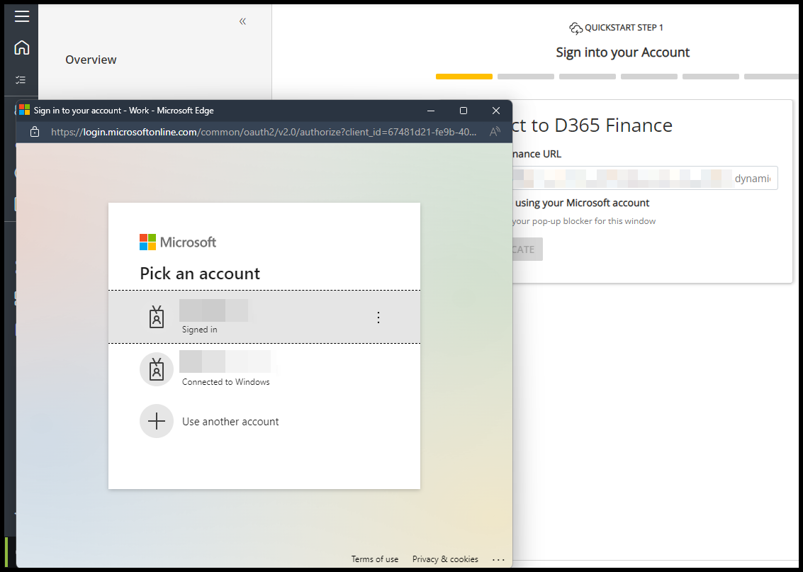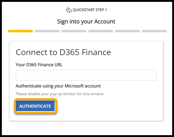 - You will first be prompted for your D365 Finance URL. This should be in the format https://<yourURL>.com