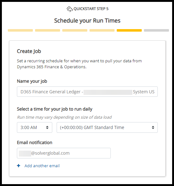 - The next screen allows you to configure the Job including setting the recurrence of the job and who should get notifications of success and failed data loads.