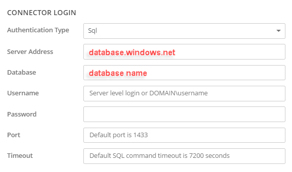 Note: A port will need to be opened on Azure SQL to allow for communication.
