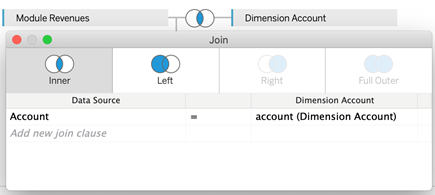 - Tableau will attempt to determine the join between the module and dimensions. To view the relationship, click on the join icon.