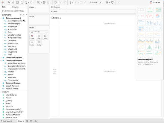 Once the data is loaded, it’s time to build dashboards. Learn more here: https://help.tableau.com/current/pro/desktop/en-us/design_and_analyze.htm