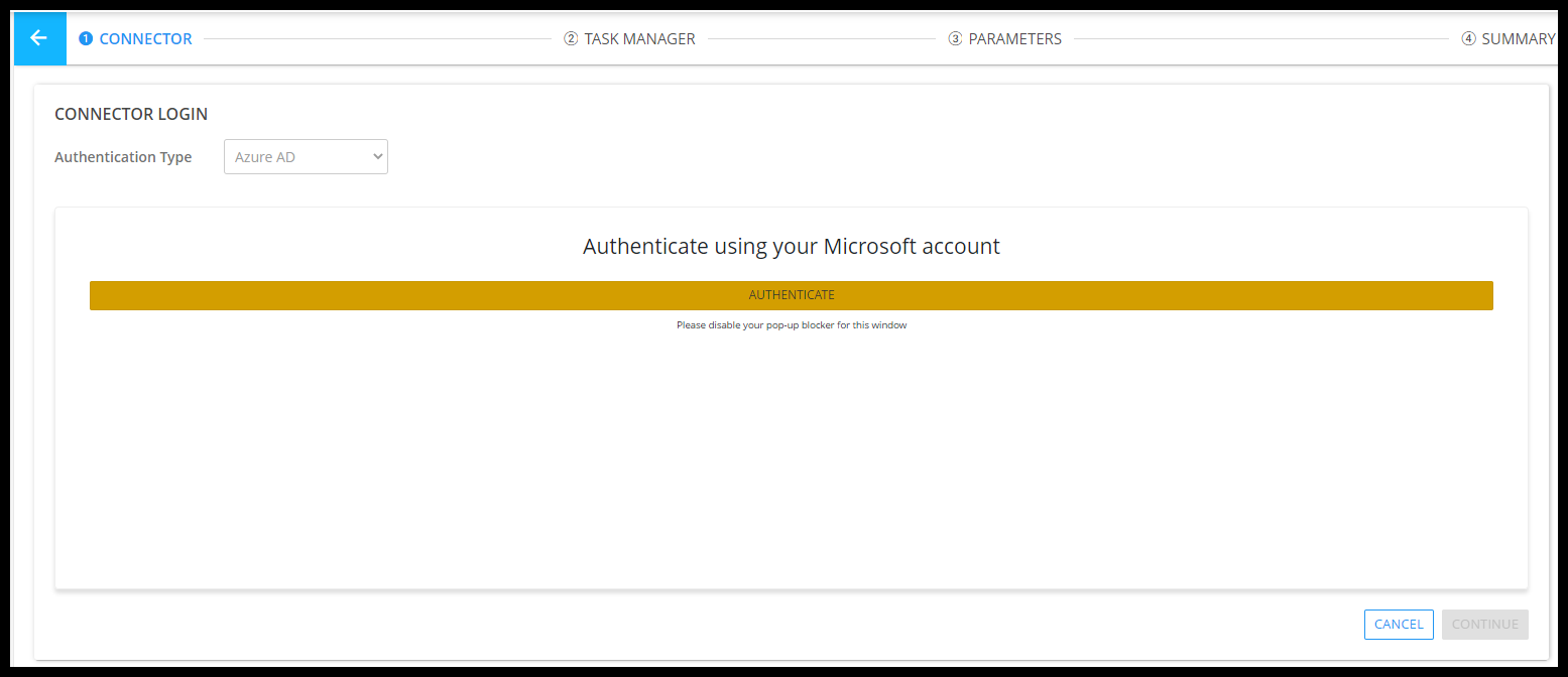 - You will see a dropdown for Authentication Type. Choose Azure Ad.