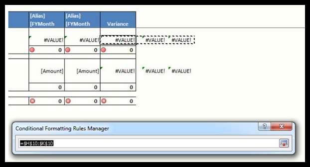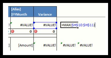 Insert two additional columns next to the column you want to add data bars to. Then add Excels max() formula on the same row as the expanding group. Notice in the picture how the rages are absolute with “$” signs, and goes from row 10 to 11. Do the same thing with the min() formula in the cell to the right of the max().
